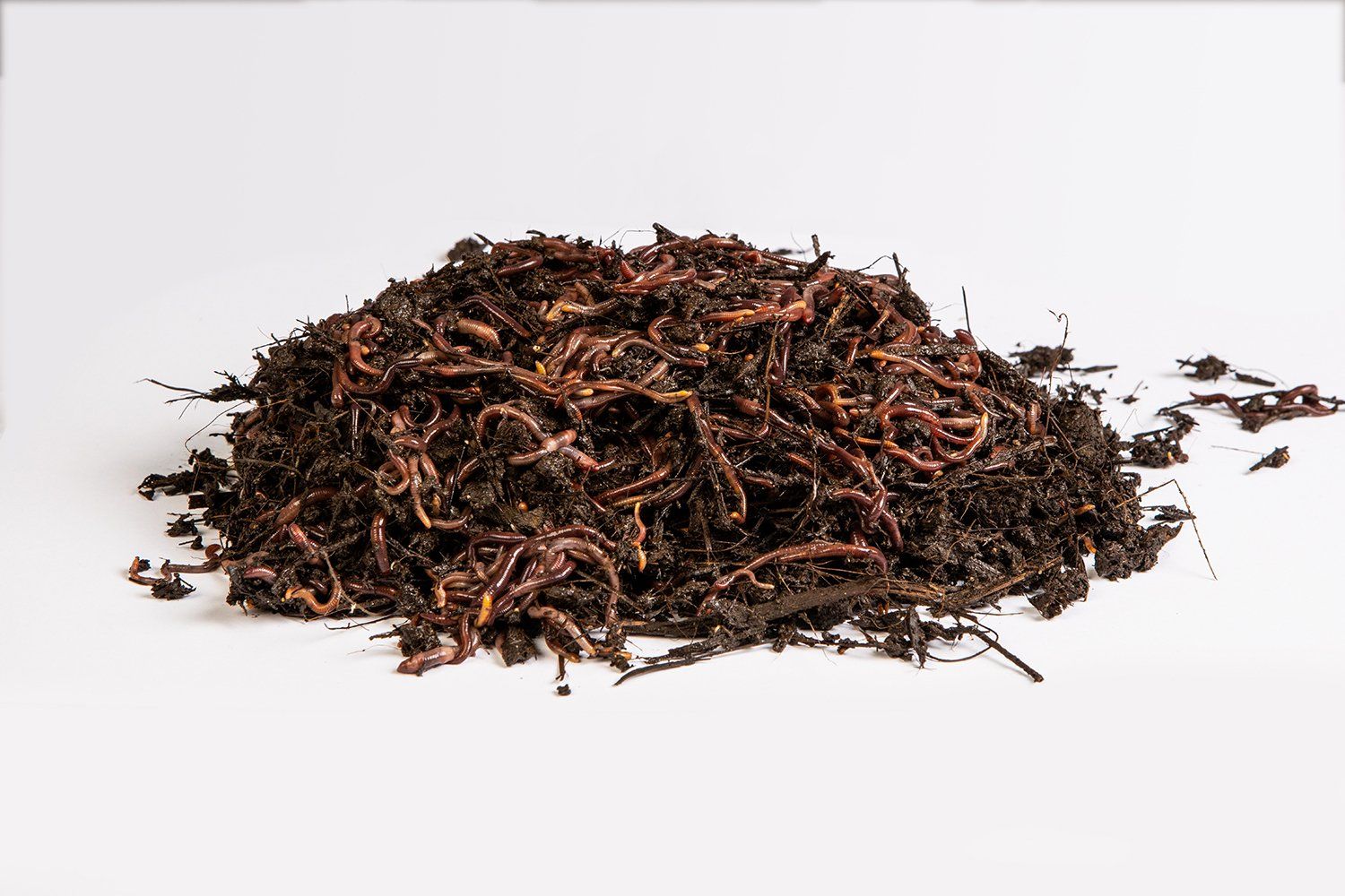 Para este kit las lombrices son extraídas de las zonas de máxima densidad de los lechos mediante cajas con un cebo especial. Se obtienen principalmente ejemplares adultos, pero también encontramos alguna lombriz joven, crías o huevos (cocones). La proporción de adultas cliteladas que contiene este kit es la óptima para que se multipliquen con rapidez y pongan en marcha el sistema de vermicompostaje.
